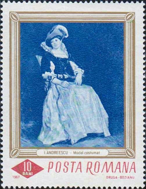 Sursă fotografie: https://commons.wikimedia.org/wiki/File:Model_costumat_by_Ion_Andreescu_1967_Romanian_stamp.jpg